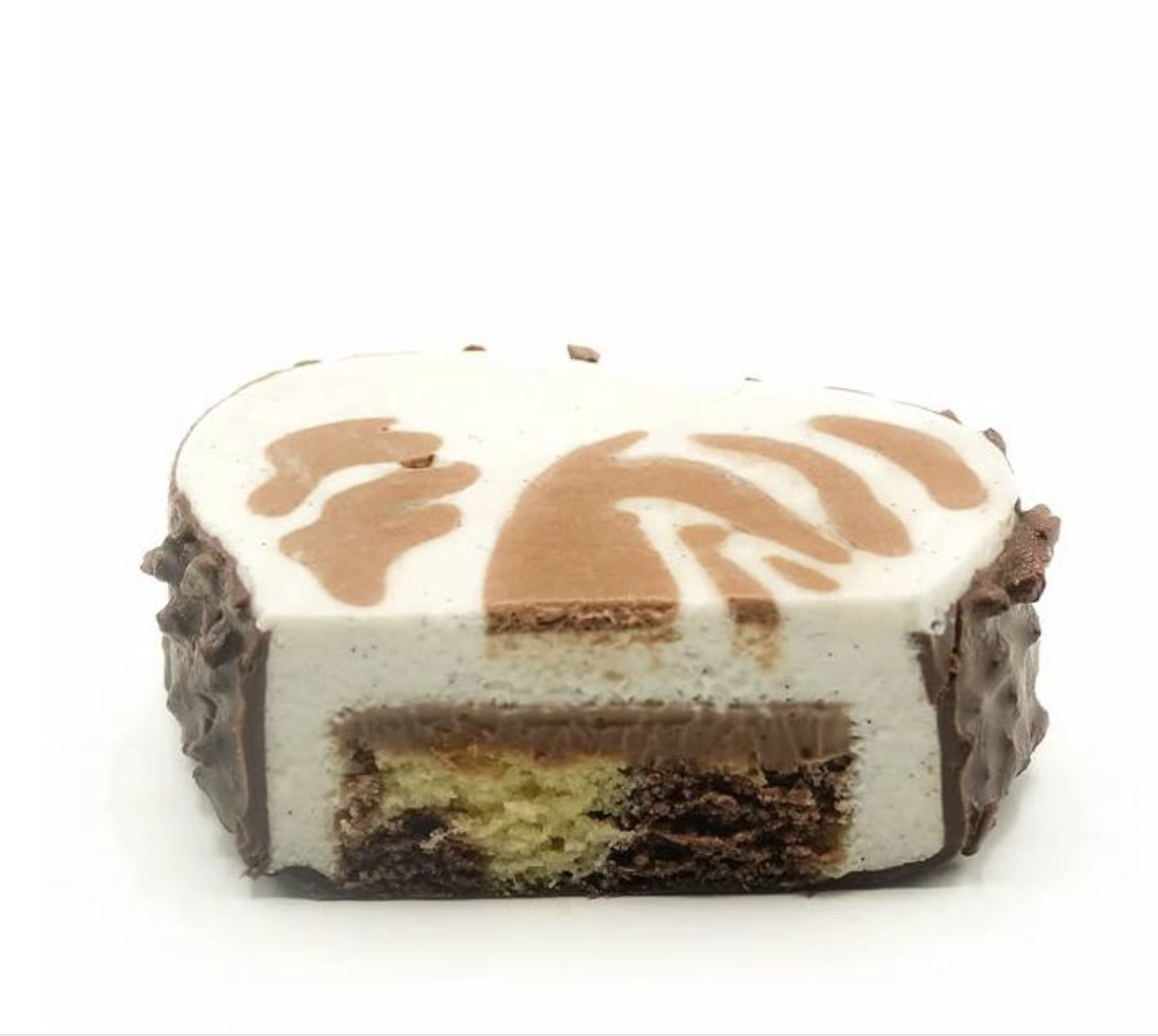 Vous réaliserez cet entremets individuel de A à Z, composé … d’un cake marbré, d’une ganache tendre au chocolat, d’une mousse légère au chocolat et d’une mousse à la vanille. Le tout est recouvert d’un glaçage rocher, histoire d’assurer un max de gourmandise 😊